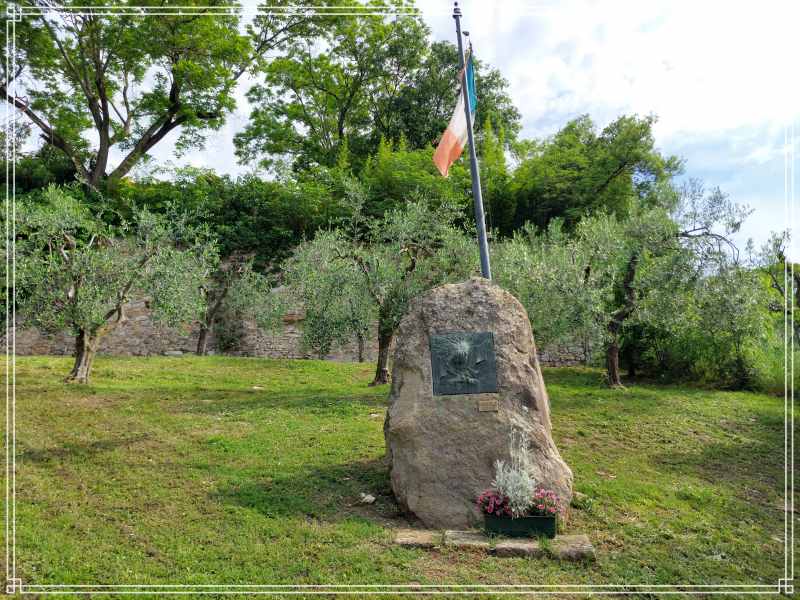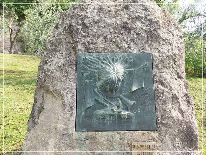 Il monumento è in pietra, con una targa che rappresenta il corpo dei bersaglieri, in quanto reca il cappello piumato e la tromba.