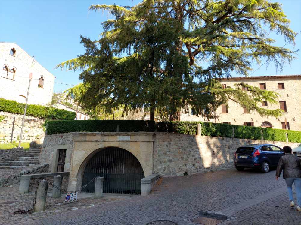 L’arco che incornicia la fontana è in pietra di Nanto e sostiene la struttura a volta.