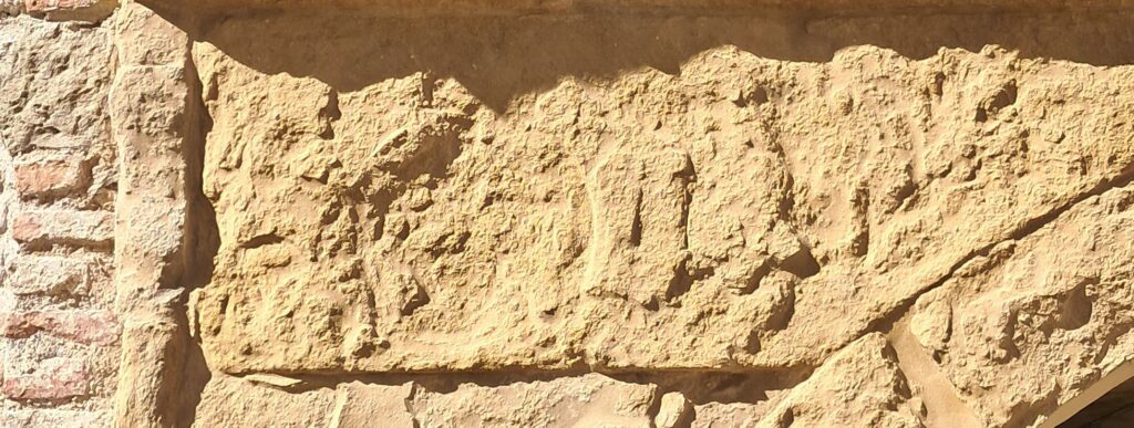 A sinistra si vedono le iniziali F.P. – Francesco Porcellini, vicario successore, accompagnate dallo stemma di un maialino rampante.
